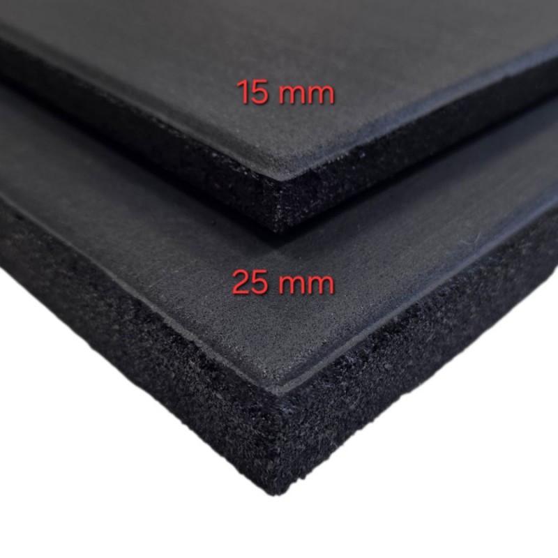 Our extra-smooth, 25-mm thick gym flooring has been designed to support you during intense workouts. Its thickness absorbs shocks when you "drop" your Olympic bar while protecting your concrete slab.
