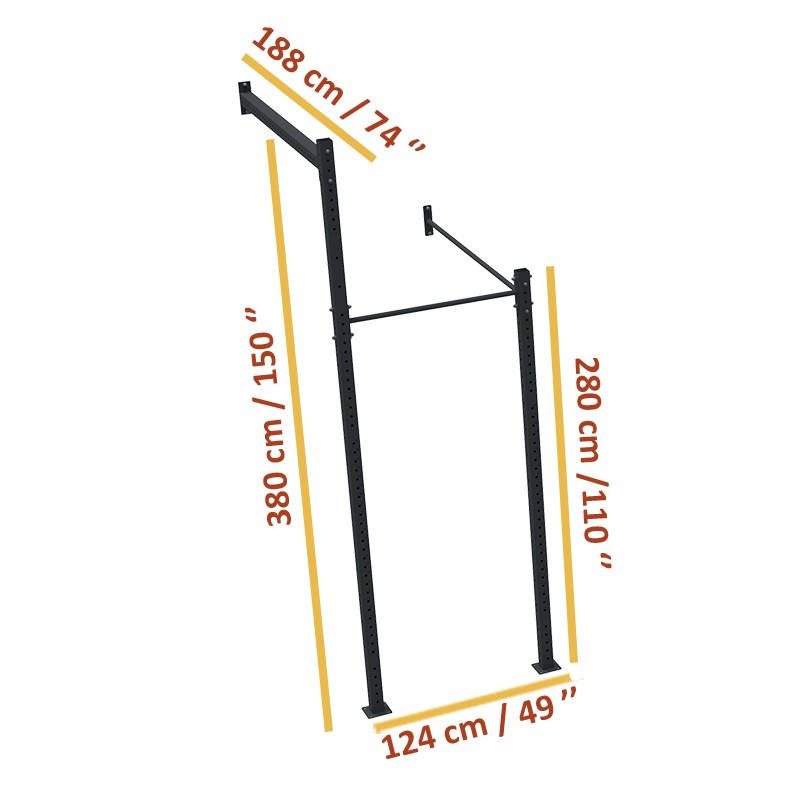 Steel Rig manufactured in CrossLiftor factories and configured for rope climb and/or ring muscle-up exercises. The sturdy gauges steel of 80 x 80 mm will provide great stability.