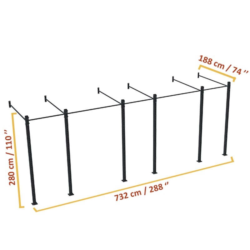 Steel rig made at CrossLiftor factories. Heavy-duty 80x80mm steel posts will provide incredible stability. The gauge steel of the rig being pierced with the same diameter and in the entire height, the possibilities are vast: pull-up bars at several heights, bars at height of children, etc. Each hole is numbered to facilitate their placement. (Tank Accessories)