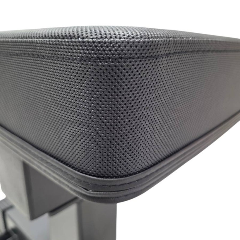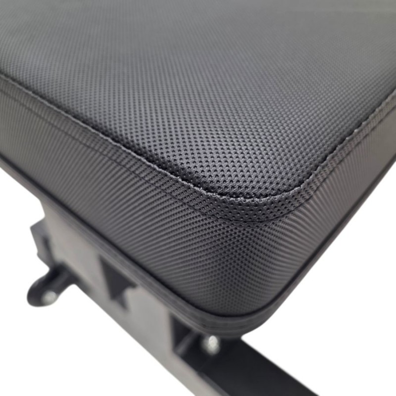 Con sus gruesos tubos de acero y su denso y grueso tapizado, el banco plano Strong by Crossliftor durará mucho tiempo. Además, el kit "asa + ruedas" facilita su traslado y almacenamiento.
