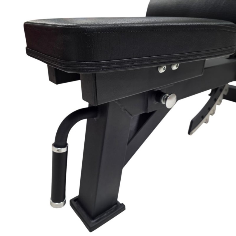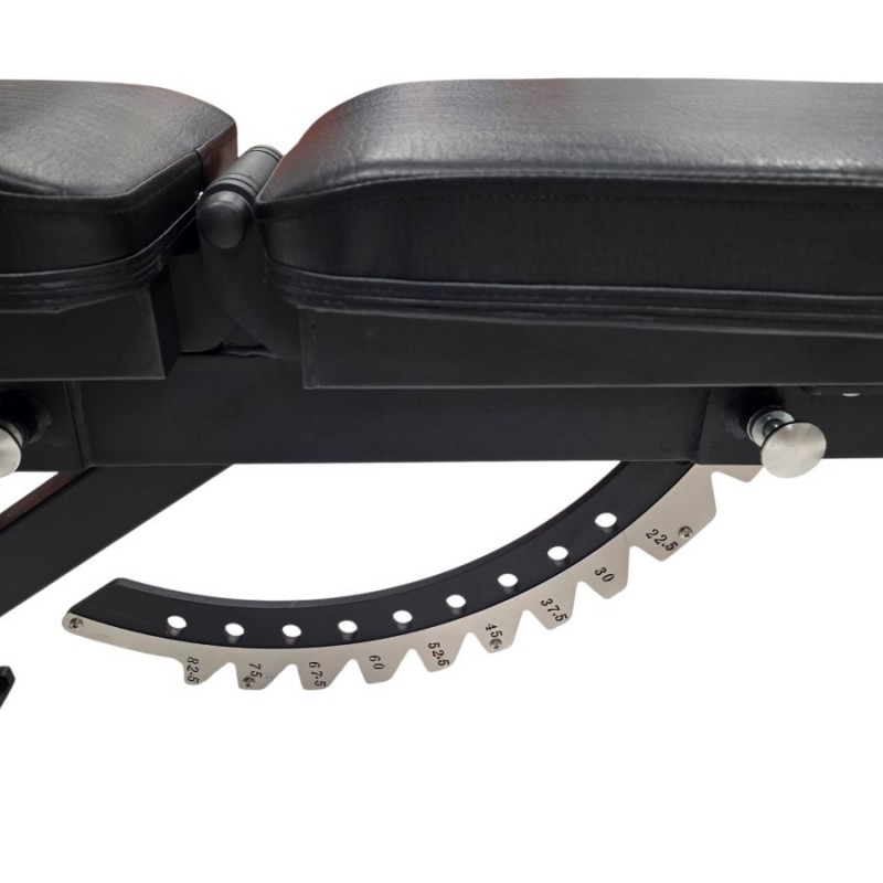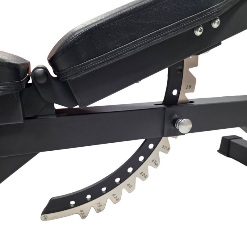 Este banco reclinable permite al usuario ajustar su inclinación de plano a 90 grados, a través de 11 posiciones. La estructura y la tapicería de este banco reclinable pueden soportar cargas pesadas de hasta 300 kg.