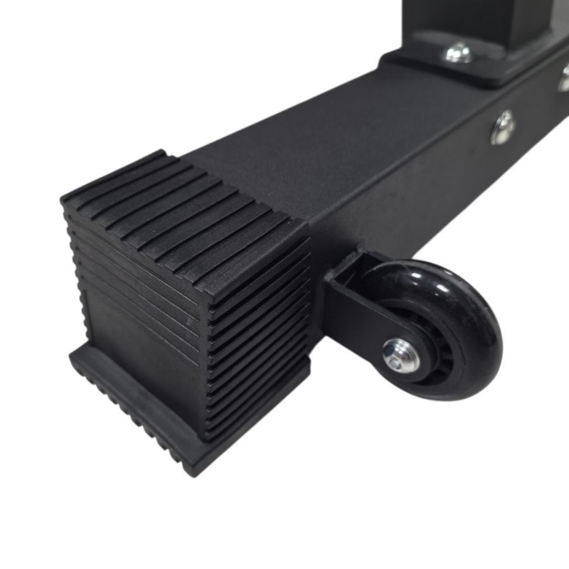 Los protectores de alta densidad del banco reclinable garantizan su comodidad y seguridad durante los entrenamientos. La calidad de su acero, su polivalencia y su tapizado hacen de este banco de musculación un equipamiento de gama alta. Combinado con su barra de musculación y/o sus mancuernas, este banco le dará acceso a una amplia gama de movimientos de refuerzo muscular. Además, dispone de ruedas de transporte y de un asa para que pueda desplazarlo fácilmente y aprovechar al máximo su espacio.
