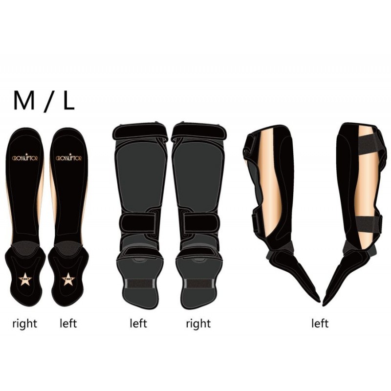 Las espinilleras CrossLiftor Fight protegen la tibia y el pie. Se articulan en el tobillo a la vez que protegen el empeine y los maléolos.