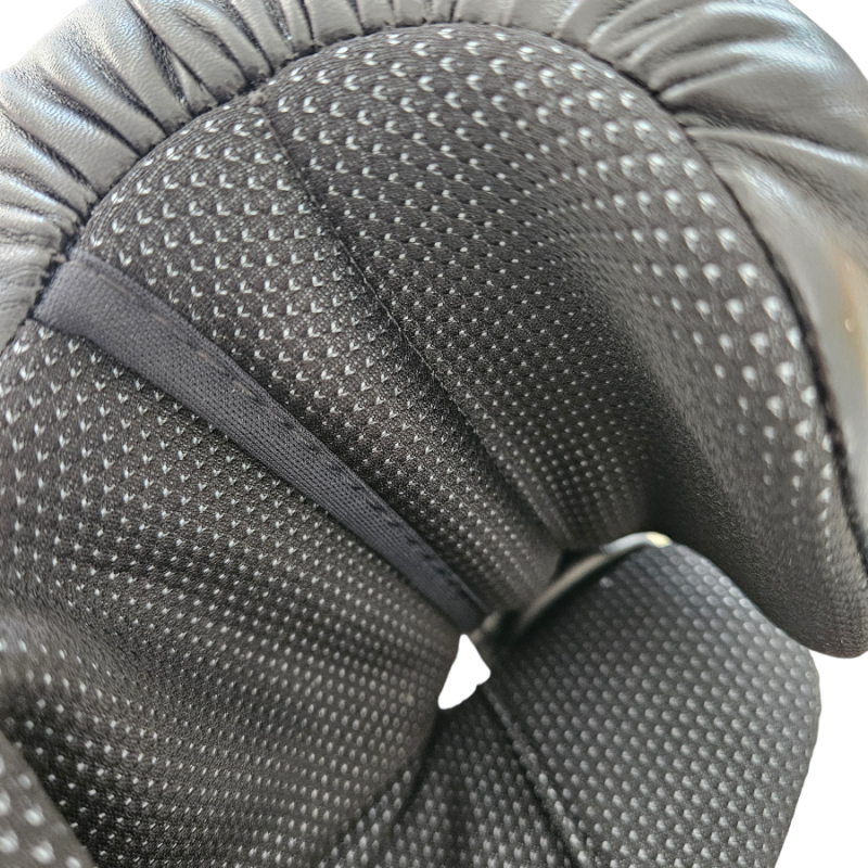 El interior de los guantes de boxeo abiertos está fabricado con un material suave y muy absorbente que evacua la humedad y el sudor.