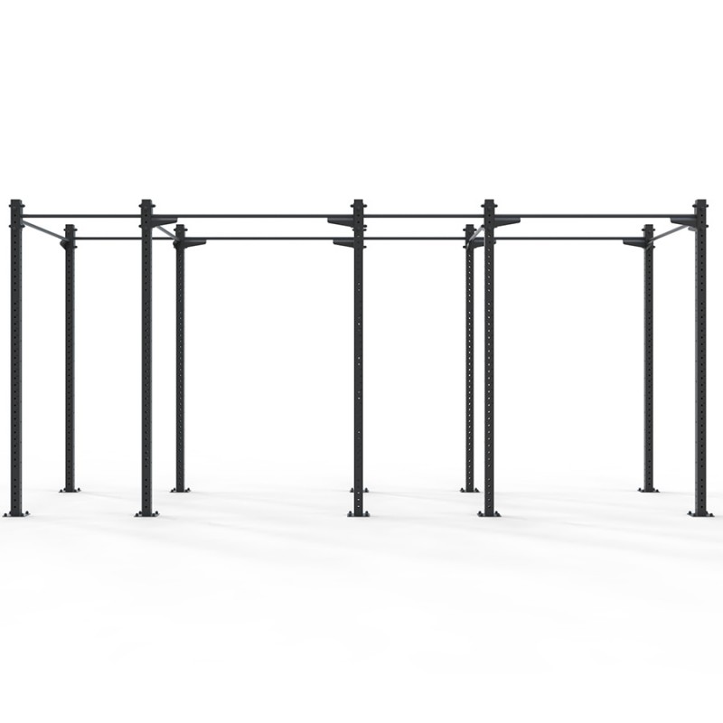 Como todas nuestras jaulas Tank, las patas están perforadas de arriba abajo para que puedas variar la altura de las barras en función de los entrenamientos que quieras realizar. Esta jaula Tank le permite entrenar a varias personas simultáneamente en varias estaciones de pull-up, squat y muscle-up. Puede añadir uno de nuestros accesorios de jaula Tank para aumentar considerablemente el número de ejercicios.