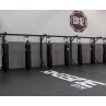 Le rail de convoyage est le meilleur moyen d'avoir un espace de travail optimisé et rangé. En effet, vous pourrez placer vos sacs de frappe en bout de rail en quelques secondes, et ainsi gagner de l'espace pour vos séances sans sac.